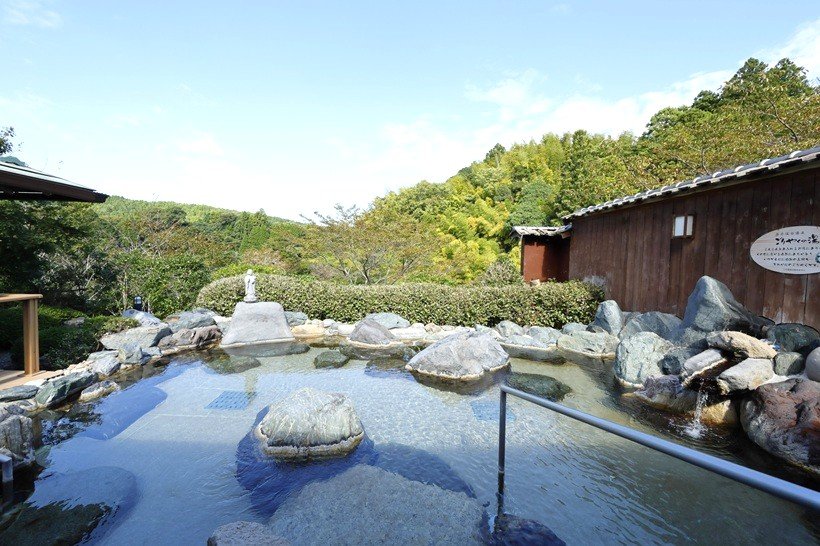 日帰り旅なら、「ごりやくの湯」はいかが。食堂を併設する日帰り温泉施設で、ゆったり10人以上は入れる露天風呂から山々を見渡せる。