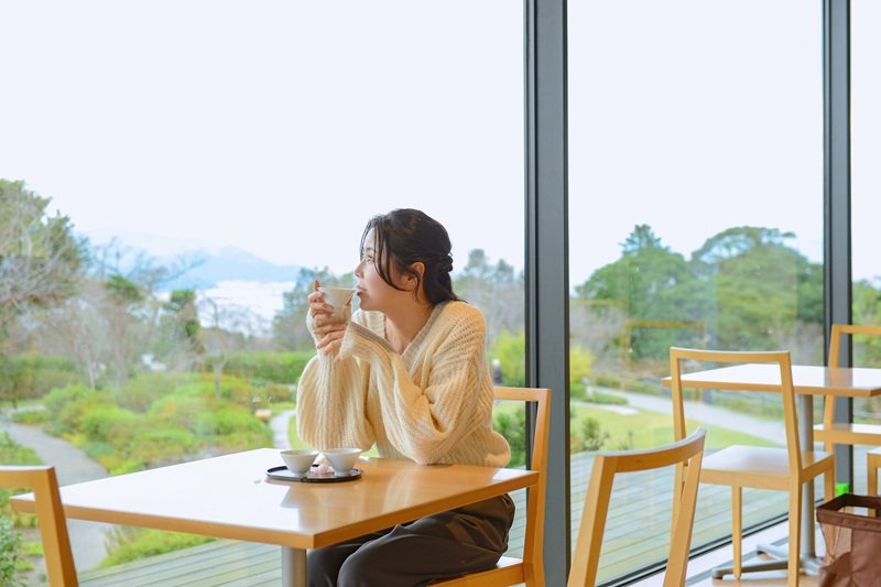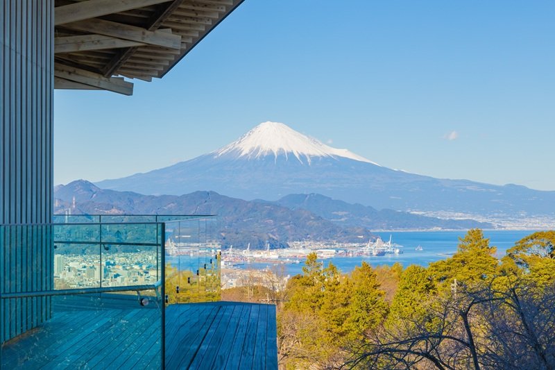 施設内2階のラウンジで静岡茶を味わいながら、改めて静岡の新旧の絶景に思いを巡らせた。「少しずつ日が差してきて、富士山がちょろっと頭をのぞかせてくれました。海がきれいで、さすがの絶景ですね。風が少し冷たかったけど、お茶が温かくてほっとしました」と田畑さん。今度は快晴の日に訪れたいものだ。