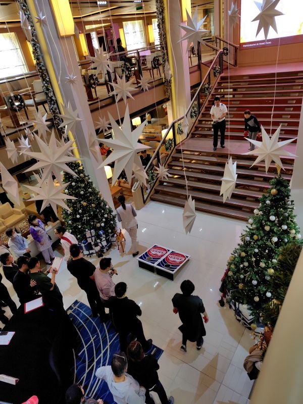 クルーズというと、きらびやかなショーなどのイベントやカジノ、ドレスアップしていただく食事など豪華なイメージがあったのだが、この船ではフォーマルな服装が必要になるようなイベントはない。最高でもエレガントカジュアルでいいという環境で、気を使わなくて良いのがうれしい。
