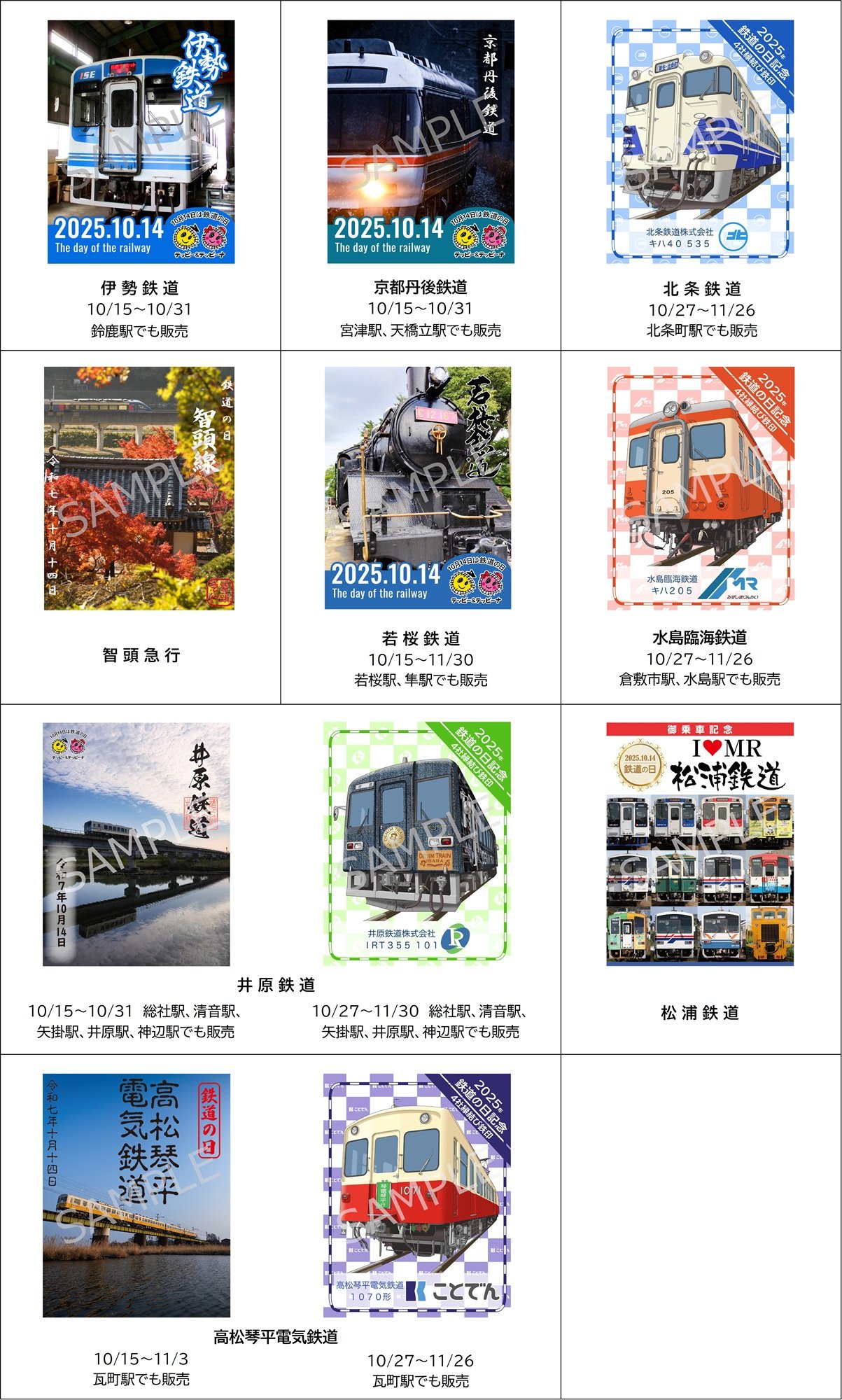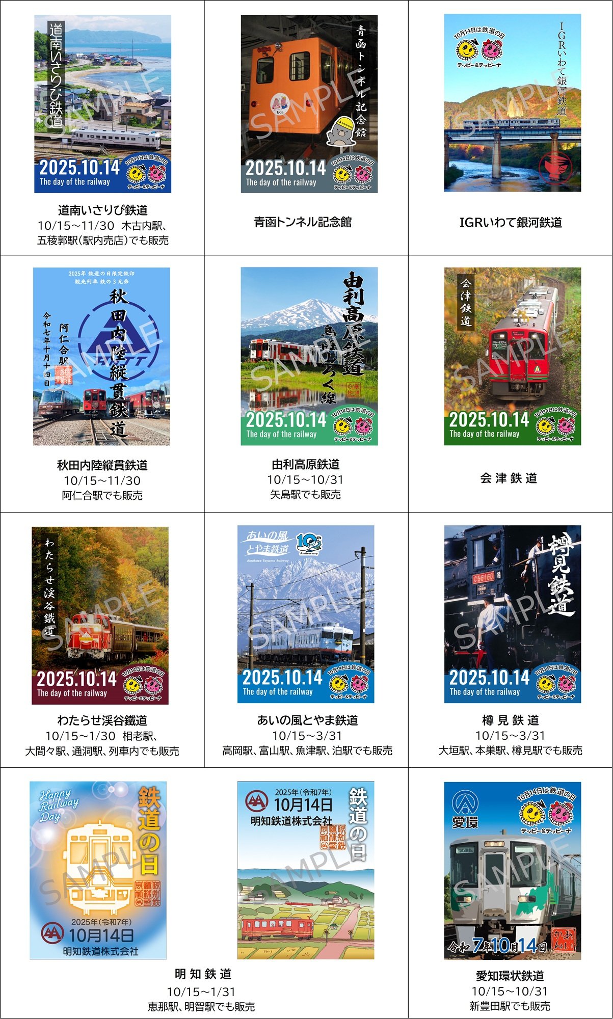 鉄印帳デジタルは「鉄道の日」の2025年10月14日、「鉄道の日」限定のデジタル鉄印をWEBアプリ内で販売する。販売するのは道南いさりび鉄道、青函トンネル記念館、IGRいわて銀河鉄道、秋田内陸縦貫鉄道、由利高原鉄道、会津鉄道、わたらせ渓谷鐵道、あいの風とやま鉄道、樽見鉄道、明知鉄道、愛知環状鉄道、伊勢鉄道、京都丹後鉄道、北条鉄道、智頭急行、若桜鉄道、井原鉄道、水島臨海鉄道、高松琴平電気鉄道、松浦鉄道の20社で、全23種。