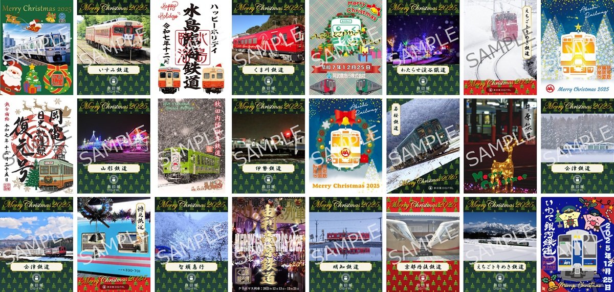 鉄印帳デジタルは「クリスマス」の12月24日、25日にローカル鉄道各社がクリスマスをイメージして作った特別なデジタル鉄印をWEBアプリ内で販売する。