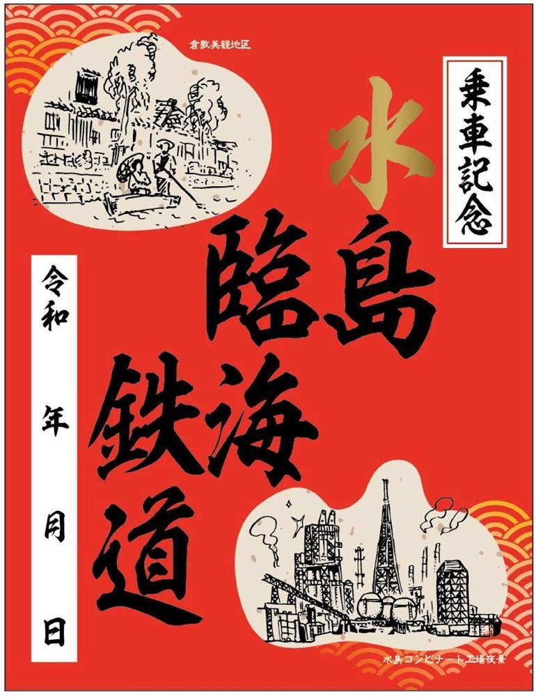 水島臨海鉄道は2026年1月21日から新デザインの鉄印を販売する。左上に倉敷美観地区、右下に水島コンビナート工場夜景が描かれている。
