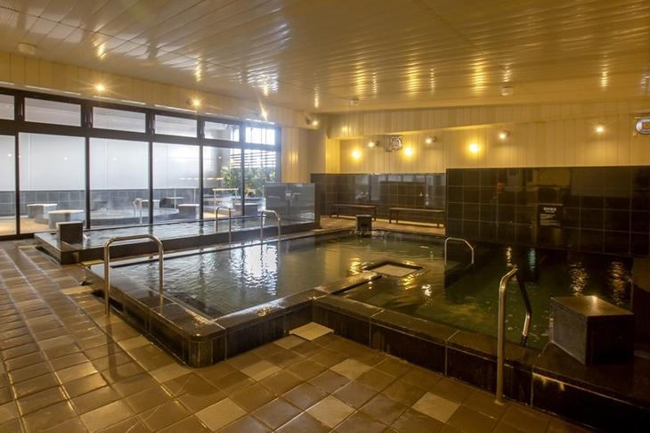 内湯と半露天風呂のほか、電気風呂や炭酸風呂、ドライサウナ、水風呂もある