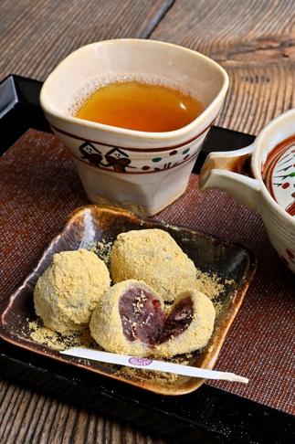 郡山名物といえば御城之口餅(おしろのくちもち)。秀吉も気に入ったという「本家菊屋」のきなこ餅は箱入り6個800円〜(店内ではお茶付き500円)